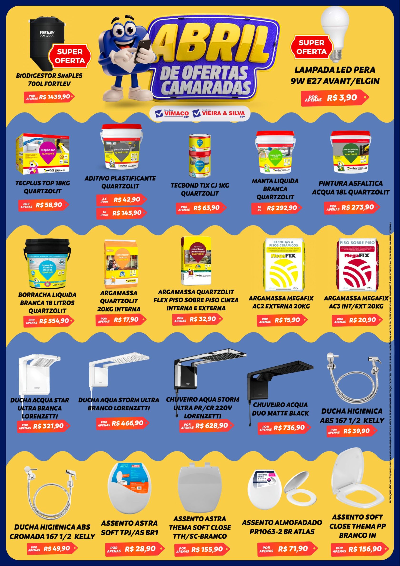 Nossas parcerias, que atravessam mais de quatro décadas com indústrias líderes de mercado, possibilitam preços e condições especiais para nossos clientes. Podemos destacar nosso relacionamento com a Suvinil, Deca, Porcelanatos Embramaco, Porcelanatos Delta, Pisos e Revestimentos Duragres, Materiais Hidráulicos Krona, Incepa e Celite Louças, Portas e Janelas Riobras, Portas e Janelas Lucasa, Impermeabilizantes Quartzolit, Impermeabilizantes Vedacit, Tintas Graftex, Churrasqueiras Boi no Grill, Margirius tomadas e apagadores, Ilumi tomadas e apagadores, Bakof Tanques e Caixas D’água, Fortlev, Banheiros e Cozinhas AJRorato, Banheiros e Cozinhas Cozimax, Fani Metais, Kelly Metais, Astra, Japi, Cedasa Pisos e Revestimentos, Bosch Ferramentas, Skill Ferramentas, Cortag Ferramentas e Vonder Ferramentas.